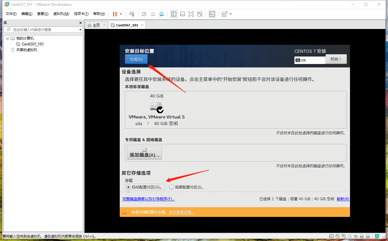 2.17 在系統(tǒng)安裝的第三步配置安裝方式為最小安裝(也可采取其他方式),配置安裝位置(即硬盤分區(qū))為自動配置分區(qū)(也可自定義分區(qū)),配置網(wǎng)絡(luò)IP地址(其中IPv4設(shè)置中的地址與網(wǎng)關(guān)根據(jù)當(dāng)前網(wǎng)絡(luò)環(huán)境進(jìn)行設(shè)置:因在新建虛擬機(jī)向?qū)?/code>的第七步虛擬機(jī)網(wǎng)絡(luò)配置中選擇的使用橋接網(wǎng)絡(luò),所以IPv4設(shè)置中的地址應(yīng)當(dāng)為物理機(jī)所在的局域網(wǎng)中一個未被使用的IPv4地址、網(wǎng)關(guān)應(yīng)當(dāng)為物理機(jī)所在的局域網(wǎng)的網(wǎng)關(guān)地址,其他配置可保持不變)