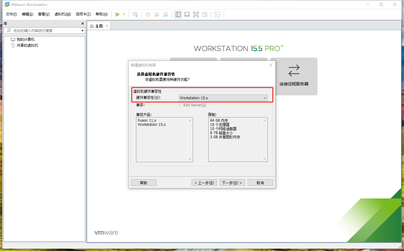 2.3 在新建虛擬機(jī)向?qū)?/code>的第二步選擇默認(rèn)的硬件兼容性,默認(rèn)值與WMware Workstation的版本相關(guān)