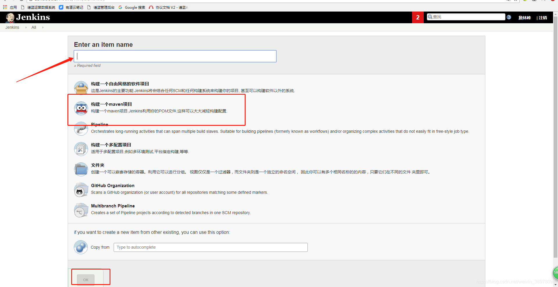 我們的項目都是maven項目,所以選擇maven選項,填上構建的項目的名稱,確認即可。