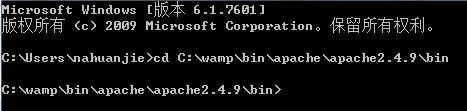 打開CMD,進入到Apache安裝目錄下的bin目錄下: