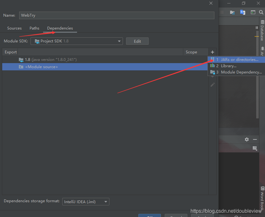 點擊Dependencies ->右邊的 + 號 -> 1 JARS or directories