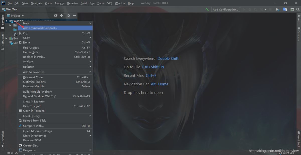 第二步,創建web項目。右鍵項目名–>Add Frameworks Support
