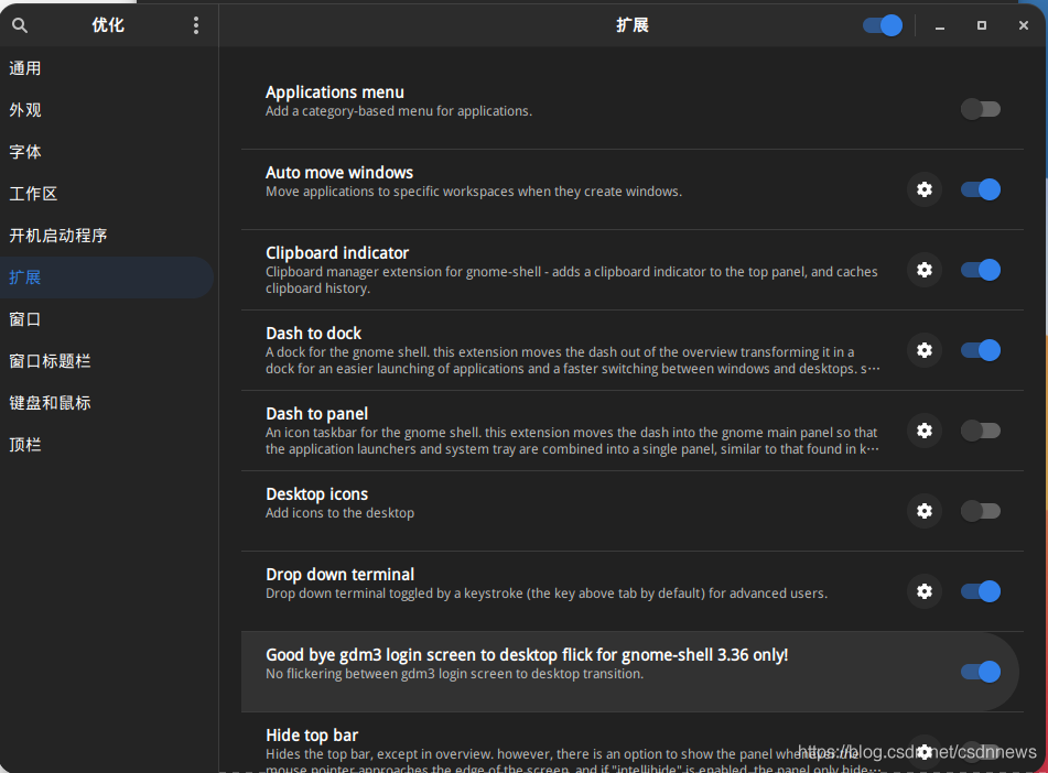 還有其他的插件都可以直接在 https://extensions.gnome.org/ 去找到安裝,然后啟用