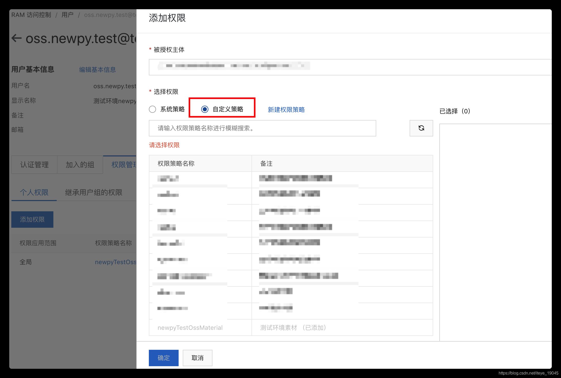 添加權限時從自定義策略中選擇上面定義的權限即可