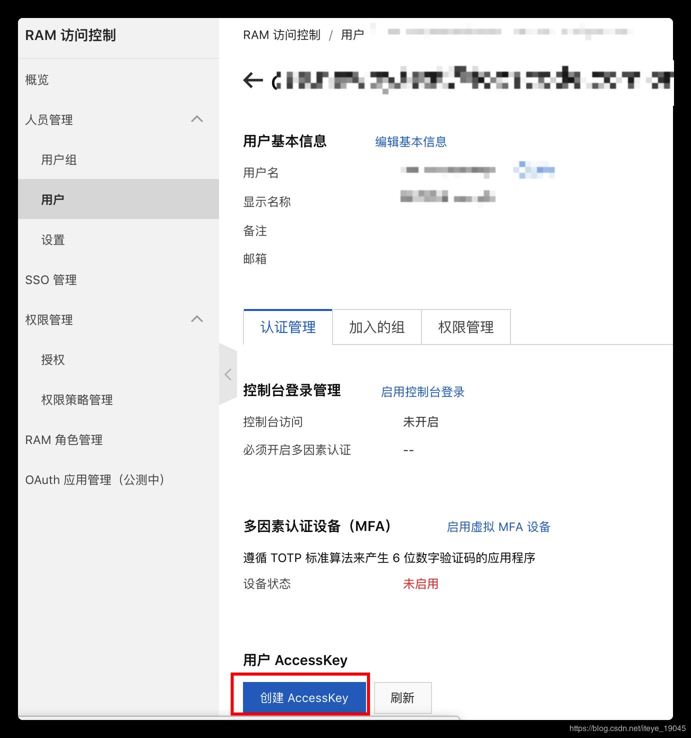 在RAM訪問控制中新建一個用戶