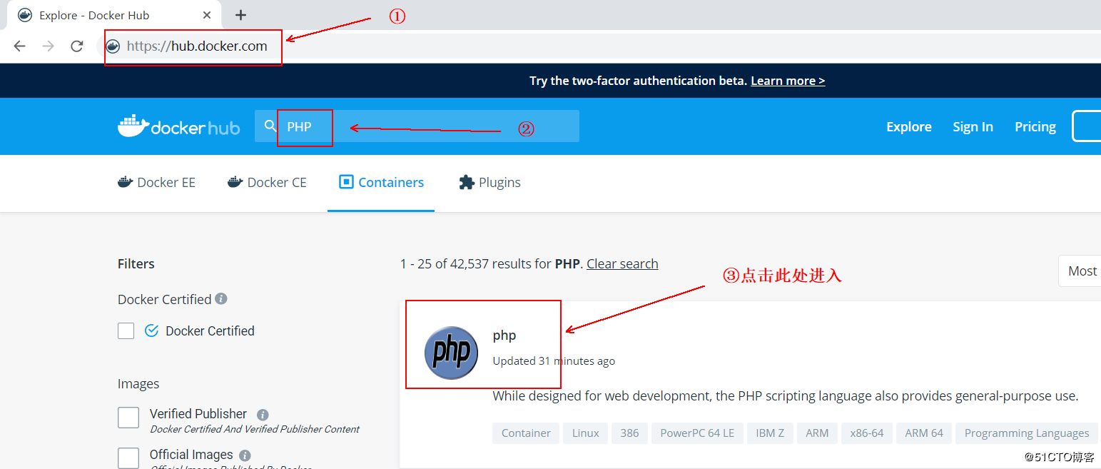 登錄docker官網,搜索“PHP”并點擊進入,如下: