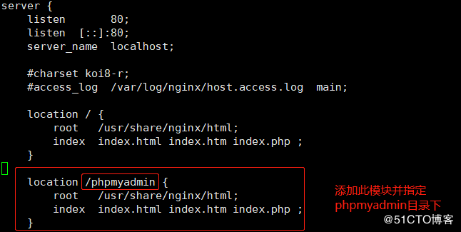 root /usr/share/nginx/html; //修改其網頁根目錄位置