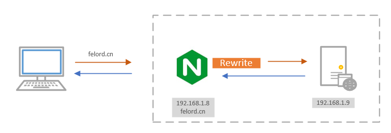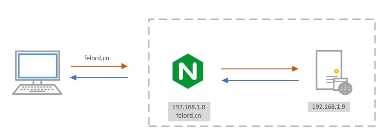 假如Nginx服務器192.168.1.8可以和同一內網網段的192.168.1.9的應用服務器進行通信,同時Nginx服務器具有公網能力并將公網綁定到域名felord.cn上。那么我們Nginx代理的對應的配置(nginx.conf)是這樣的: