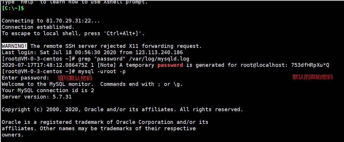 [root@localhost ~]# grep "password" /var/log/mysqld.log