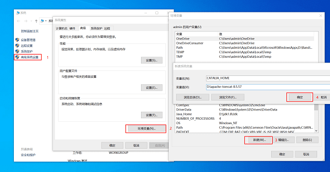 選中Path變量,雙擊Path變量。彈出框中選擇【新建】,在光標閃爍的空白處填寫:D:\apache-tomcat-8.5.5\bin