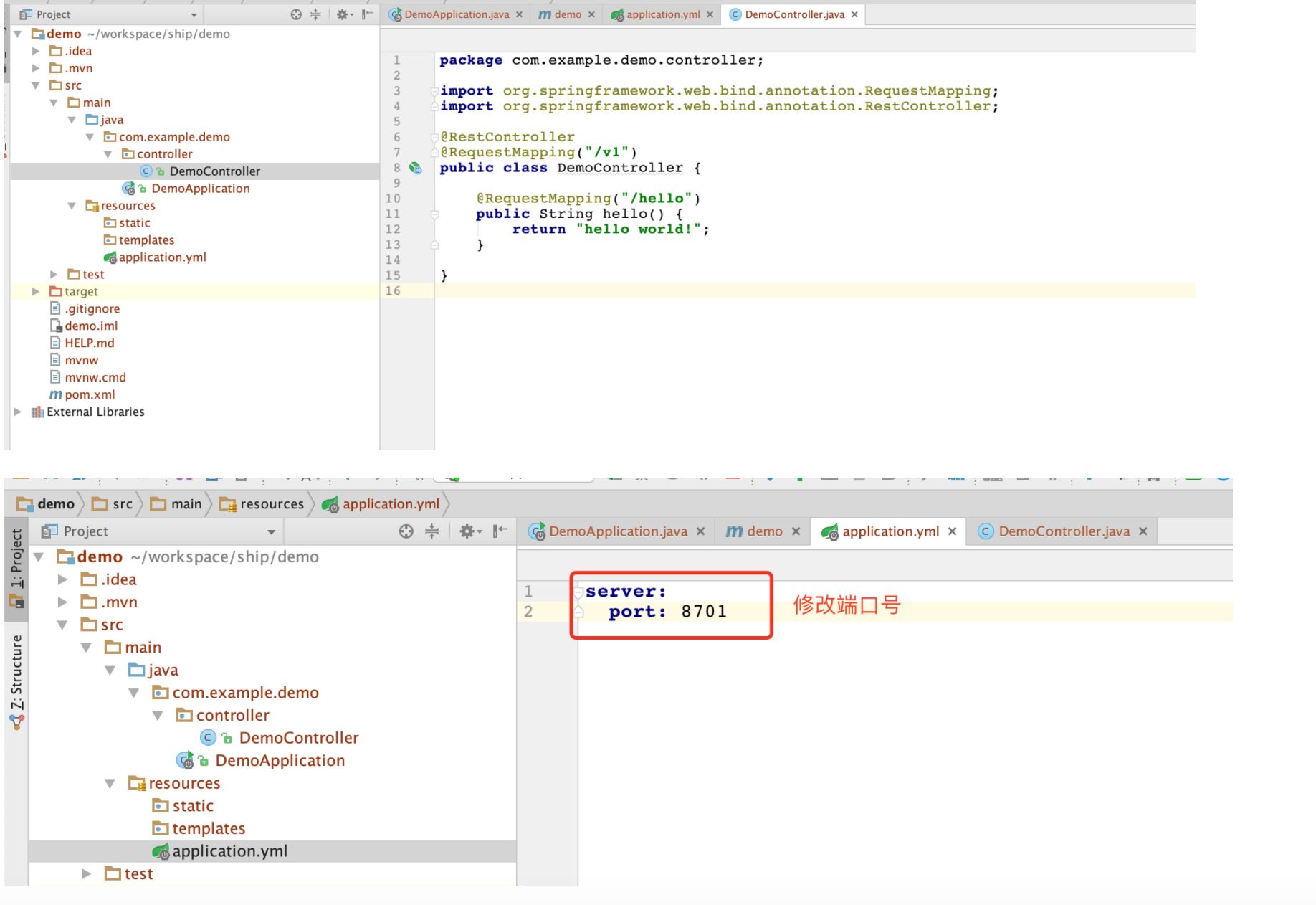 程序啟動,發現程序不是默認的8080端口了,訪問:http://localhost:8701/v1/hello