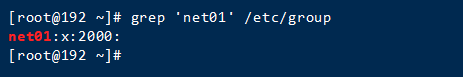 [root@192 ~]# grep ‘net01' /etc/group //查看/etc/group中組net01信息