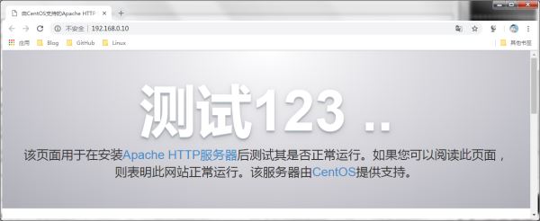 提示:從ansible-playbook 對playbook的執行狀態來看是成功了,接下來我們直接使用瀏覽器來訪問192.168.0.10,看看httpd是否已經能夠正常訪問,如果能正常訪問說明httpd已經安裝好了