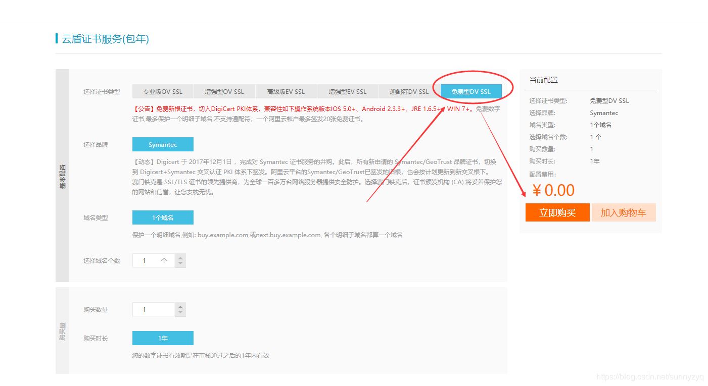由于我服務器是阿里云買的,所以阿里會送幾個免費的SSL證書,下面以阿里云的獲取 SSL 證書過程進行說明。