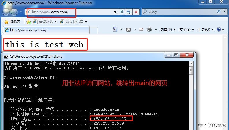 [root@localhost html]# vim main.html ##編輯非法IP訪問網頁內容