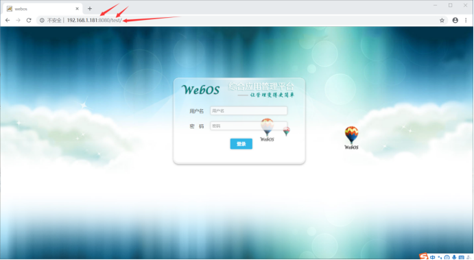 ⑦打開網(wǎng)頁:輸入192.168.1.181:8080/test