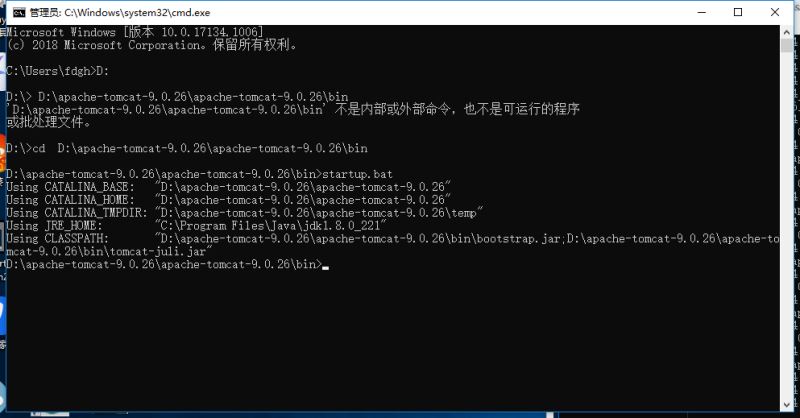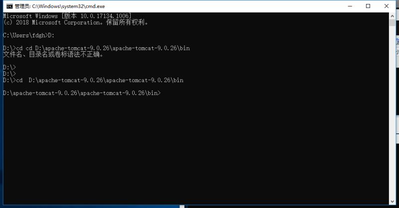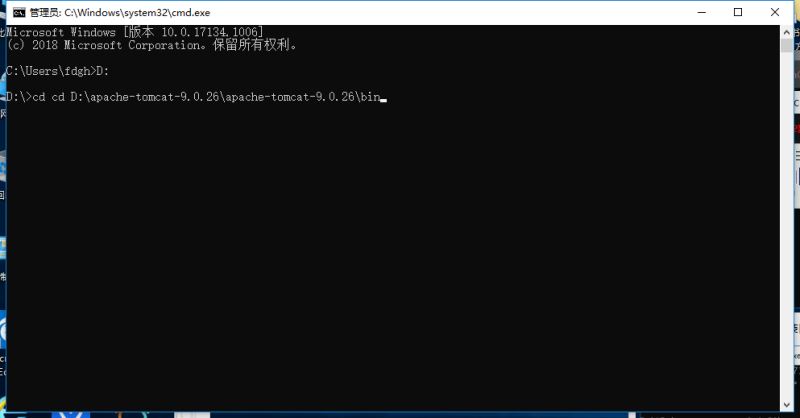 到doc命令行輸入“ D:”,進入D盤目錄(進入d盤目錄是因為我把TomCat安裝到了d盤)