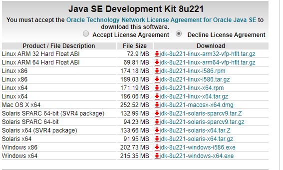 因為本次演示使用Windows系統,所以我下載的是jdk-8u221-windows-x64.exe