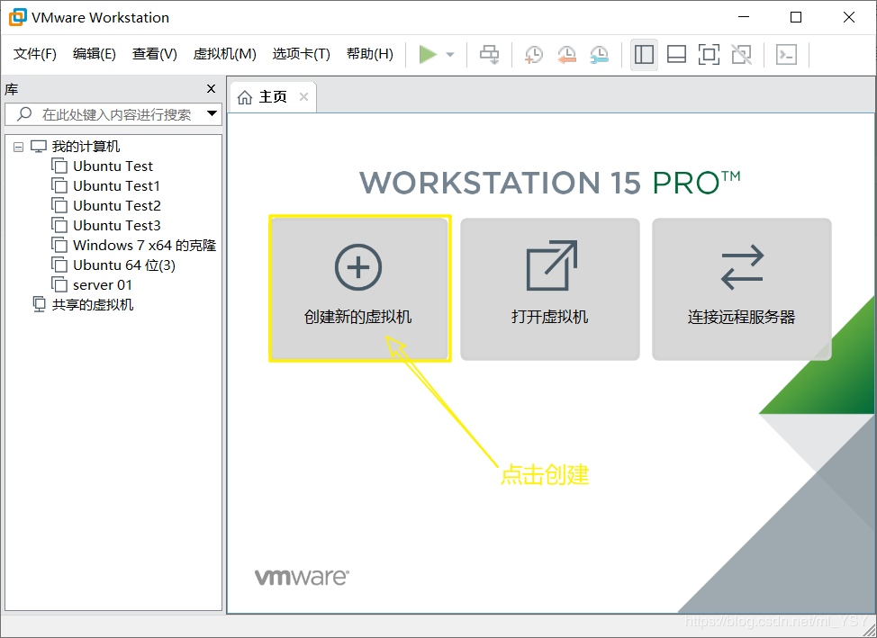 1、首先,在VMware Workstation Pro的主頁面點擊創建新的虛擬機;