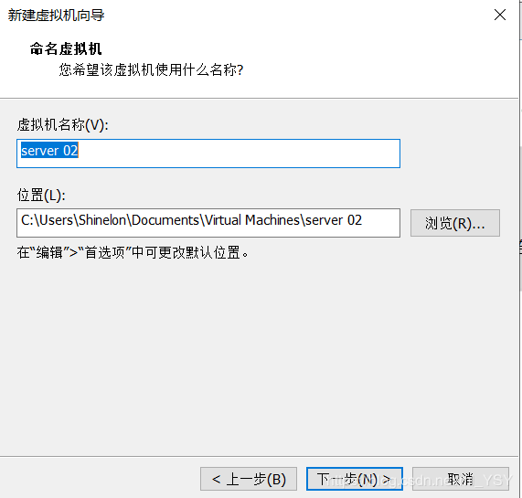 5、接下來的一個窗口將是給你的虛擬機命名和指定路徑,自己想放在哪里你自己決定,這個就不用我說了吧,大家都知道。然后下一步;