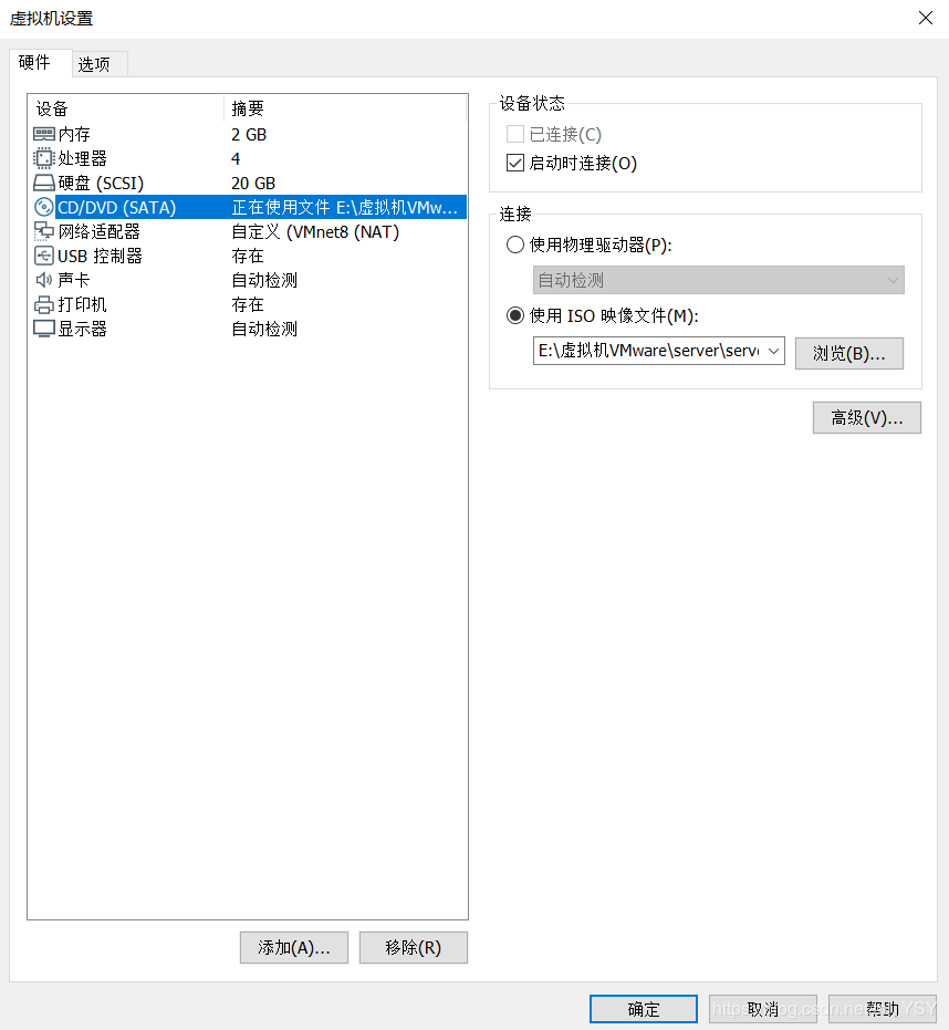 7、在下面這一頁,你可以進行磁盤的定義,這里看你個人意愿,進行操作,這里不改,建好后也能改,不用怕后面不能改。此時,你看到的是完成選項,這代表,你已經建好一個虛擬機了。如果你在這里沒有進行自定義操作,請在開啟虛擬機之前點擊編輯虛擬機設置,你會看到下圖中有一個鏡像,安裝地址:https://www.jb51.net/softs/532597.html