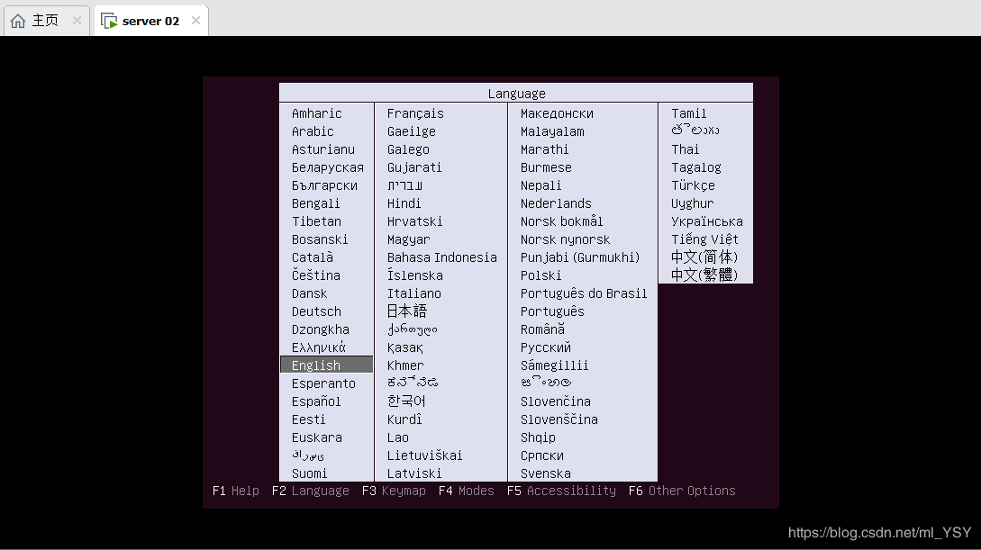8、開啟虛擬機,你會看到下面的窗口內容,為了系統更加流暢,我選則的是英語,如果你自己看不懂其中的內容,請選擇自己看的懂得語言。然后鼠標電競虛擬機,按enter,進入下一頁;