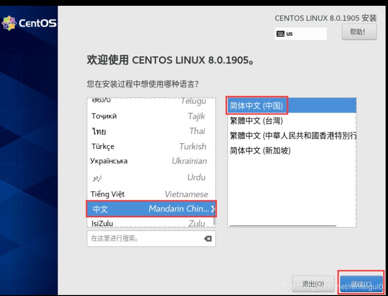 5、選擇安裝過程中使用的語言,這里選擇中文、簡體中文(中國),點擊繼續。