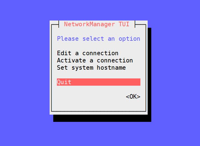 運(yùn)行 nmtui 并按照屏幕說(shuō)明操作,示例如下所示,