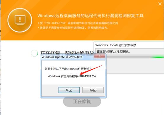 注: CVE-2019-0708熱補丁工具”是針對“Windows遠程桌面服務的遠程代碼執行漏洞CVE-2019-0708”推出的熱補丁修復工具,可以針對不能直接打補丁環境,提供的臨時解決漏洞問題的方案。