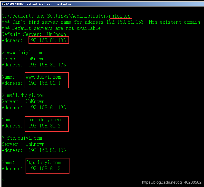 3.使用nslookup命令測試三個DNS解析能否成功