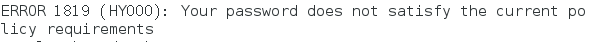 原因是因為MySQL有密碼設置的規范,具體是與validate_password_policy的值有關:
