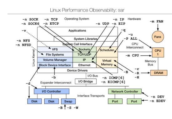 sar(System Activity Reporter系統(tǒng)活動情況報告)是目前 Linux 上最為全面的系統(tǒng)性能分析工具之一,可以從多方面對系統(tǒng)的活動進行報告,包括:文件的讀寫情況、系統(tǒng)調用的使用情況、磁盤I/O、CPU效率、內存使用狀況、進程活動及IPC有關的活動等。