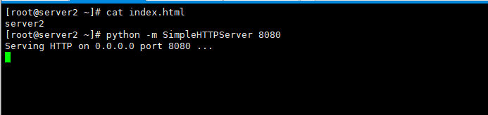 cd ~ echo "server2" > index.html python -m SimpleHTTPServer 8080