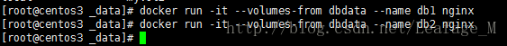 2.然后,可以在其他容器中使用–volumes-from來掛載dbdata容器中的數據卷,例如創建db1和db2兩個容器,并從dbdata容器掛載數據卷:
