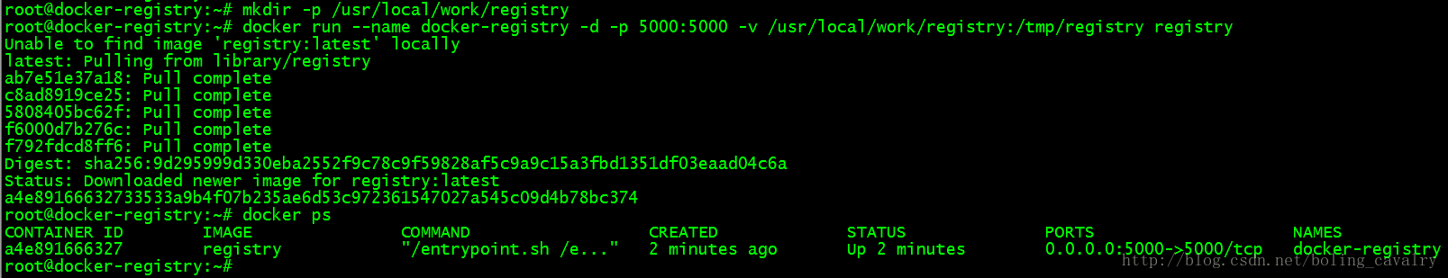 執(zhí)行以下命令,會啟動一個registry容器,該容器用于提供私有倉庫的服務(wù):