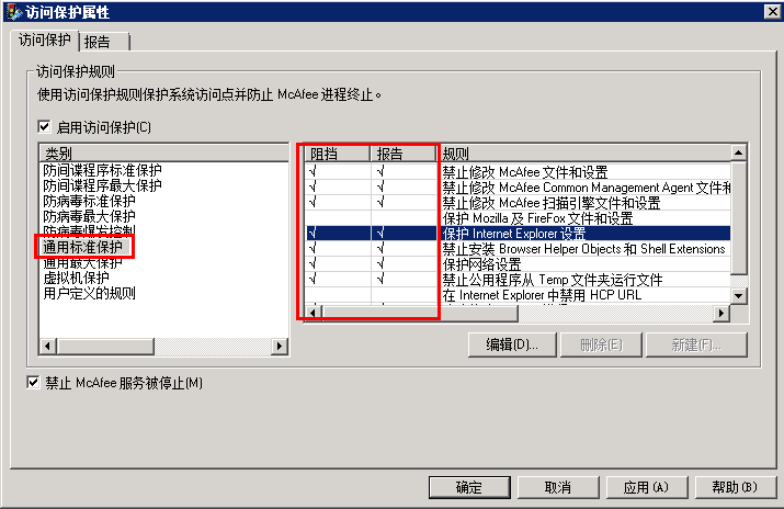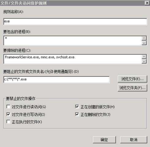 這些規則的添加,需要經常查看“訪問保護日志”,看那些程序是我們請允許執行的,但卻給防火墻阻止了,將它們到對應的排除進程當中(具體操作如果不懂的可以查查百度,或者查看我下一篇文章《服務器安全檢查指引——日常維護說明》,它屬性服務器的日常維護內容)