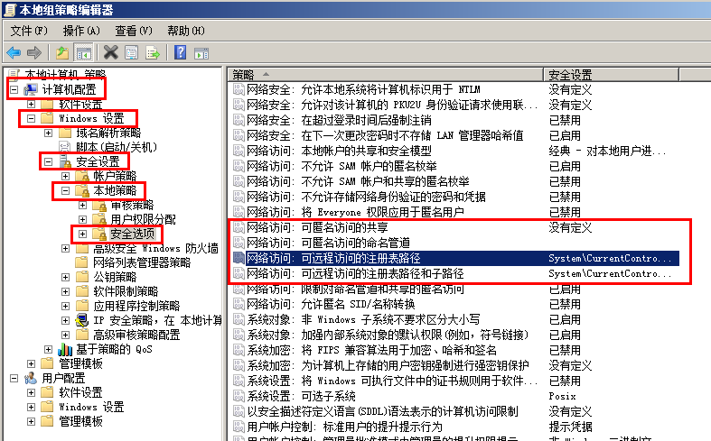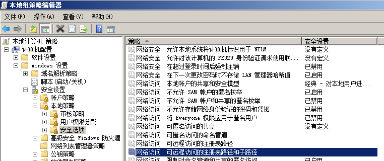 網絡訪問:可遠程訪問的注冊表路徑和子路徑;