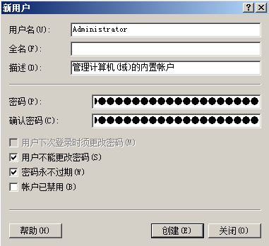 然后新建一個Administrator欺騙帳戶,設置混合超長密碼