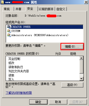 所有磁盤除CREATOR OWNER、administrators和system的用戶權限全部刪除(C盤必須保留Users用戶組,理論上來說是要刪除Users用戶組的,但很多朋友如果這里直接刪除,操作不當的話,網站有可能就訪問不了,必須對系統目錄下的不少目錄重新配置權限非常麻煩,所以本文建議保留,只要按下面的一些設置做到位,這里也不會有多大的安全隱患的)