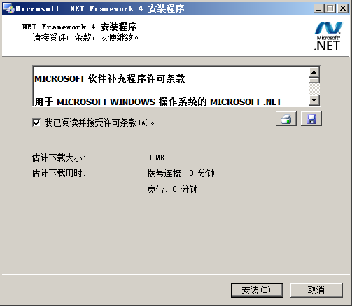 運行dotNetFx40_Full_x86_x64.exe安裝.net4框架(這個必須在IIS安裝完成后才進行安裝,這樣才會在IIS的相關屬性中自動綁定.net4框架)