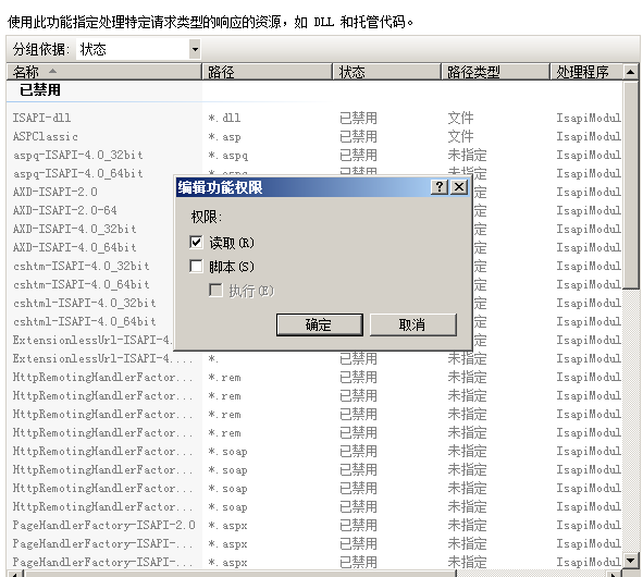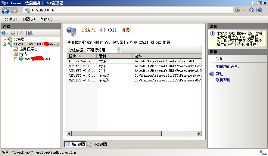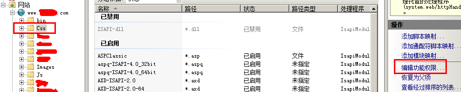 將Active Server Pages設置為不允許,將ASP.NET v4.0.30319設置為充許