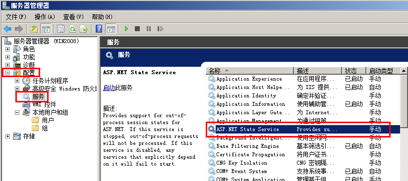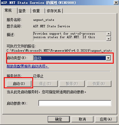 運行ASP.NET State Service服務,并將它設置為自動運行