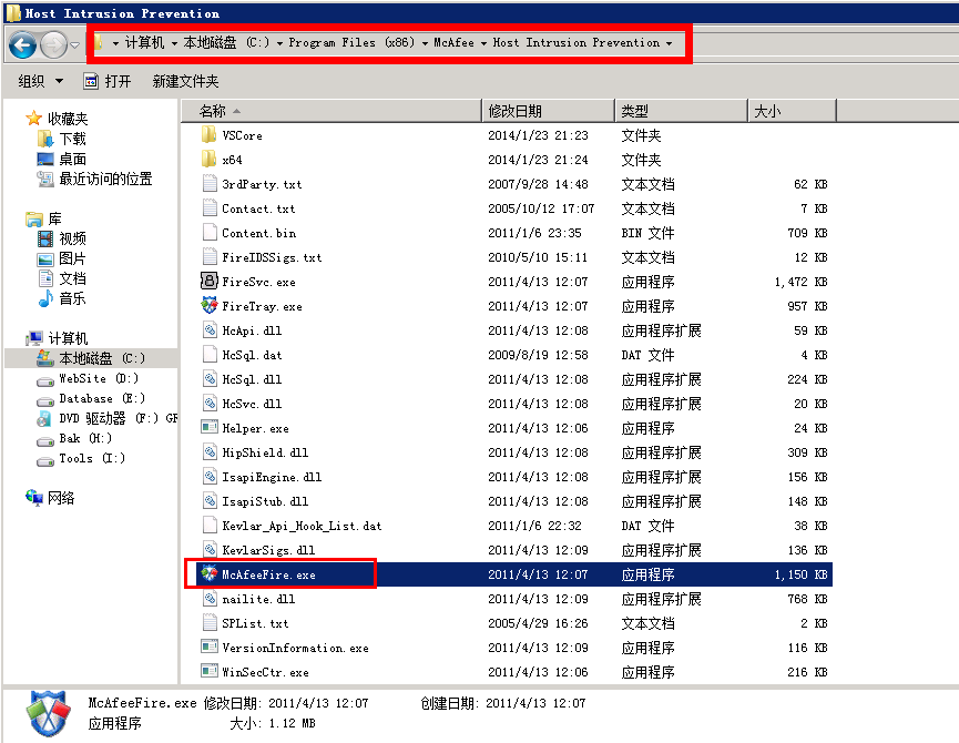 運行McAfeeFire.exe,就可以打開防火墻軟件了
