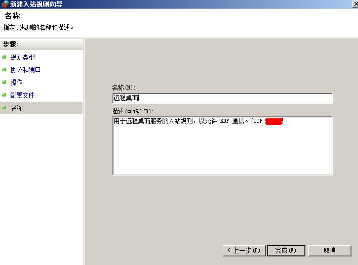 修改了遠程桌面端口后,原防火墻的遠程桌面規則就會失效了,需要重新創建規則