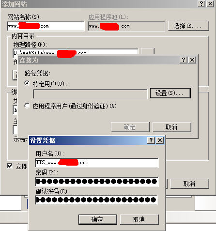 注:后來經同事提醒,原來win2008服務器的IIS訪問可以使用應用程序池名稱做為帳號來設置(大家可以參考:http://www.cnblogs.com/yjmyzz/archive/2009/10/26/1590033.html),而不用再創建多個獨立的賬號,不過文檔都已經寫了,就懶得改了,還是使用Win2003的設置模式來添加帳戶