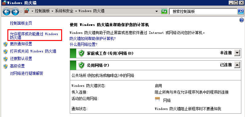 啟用防火墻功能——如果是遠程桌面操作的話,這一步操作后遠程桌面會馬上無法聯接,需要在服務器本地設置請允許才能再聯接上