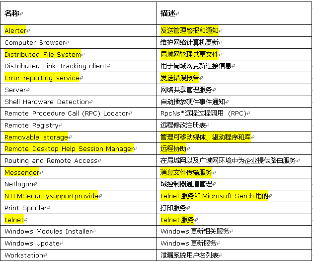 打開服務器管理器,進入“服務”管理,將下列服務禁用(用黃色標識的服務在2008系統中可能不存在)