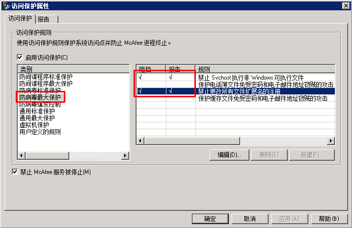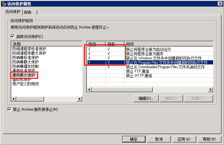 | 通用最大保護:禁止將程序注冊為服務 | svchost.exe, mmc.exe, Explorer.EXE |