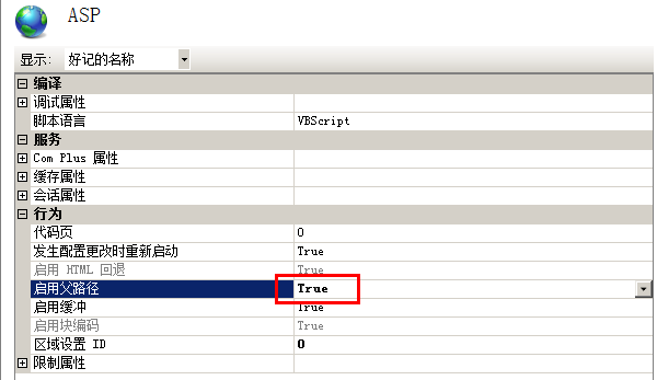 雙擊ASP打開屬性編輯,將啟用父路徑修改為True