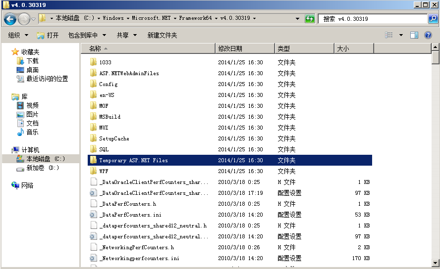 進入C:\Windows\Microsoft.NET\Framework64\v4.0.30319目錄,設置Temporary ASP.NET Files文件夾的訪問權限